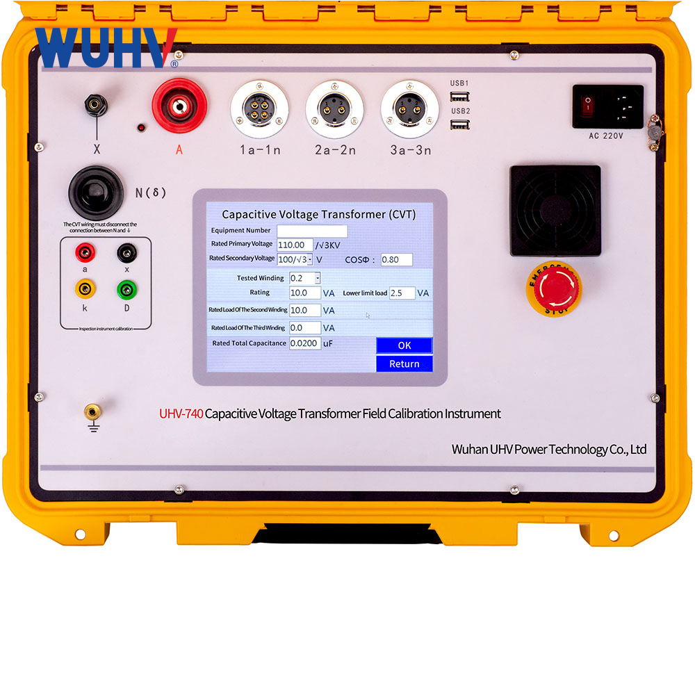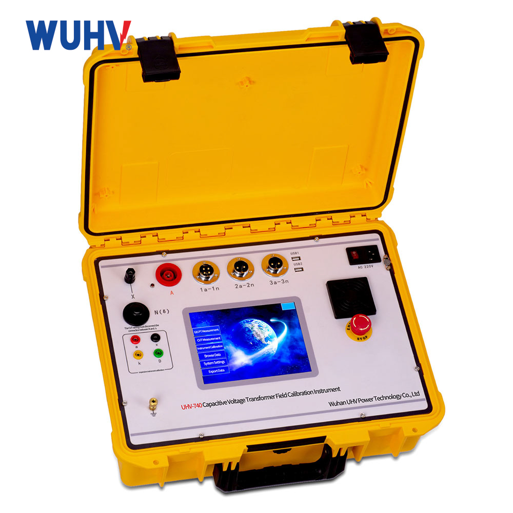 UHV-740 Capacitive Voltage Transformer Field Calibration Instrument GIS Field Calibrator simplifies on-site error calibration for electromagnetic (PT) and capacitive voltage transformers (CVT), overcoming traditional challenges of complex wiring, bulky equipment, and high-voltage requirements. This all-in-one solution performs accurate low-voltage measurements across multiple ratios (6kV-220kV/100V), integrating innovative technologies like variable-frequency power supply, common platform design, and simulated voltage loads.